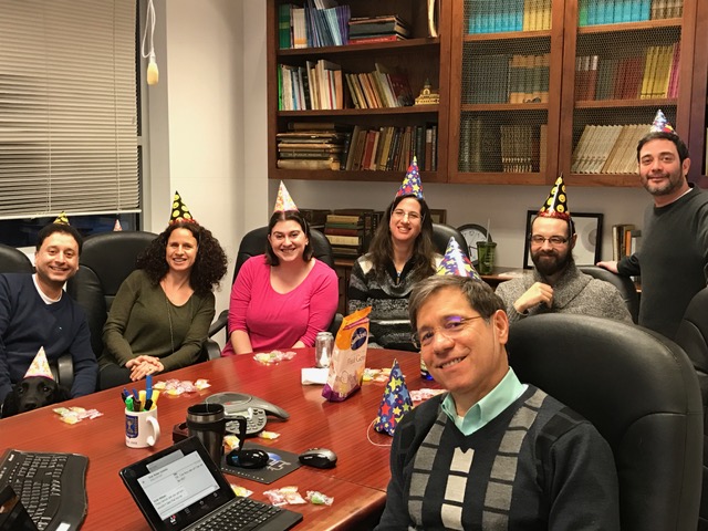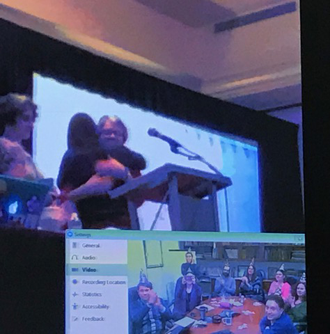 We donned party hats and showered Joan with candy (real candy, virtual shower) in celebration of her well-deserved honor.