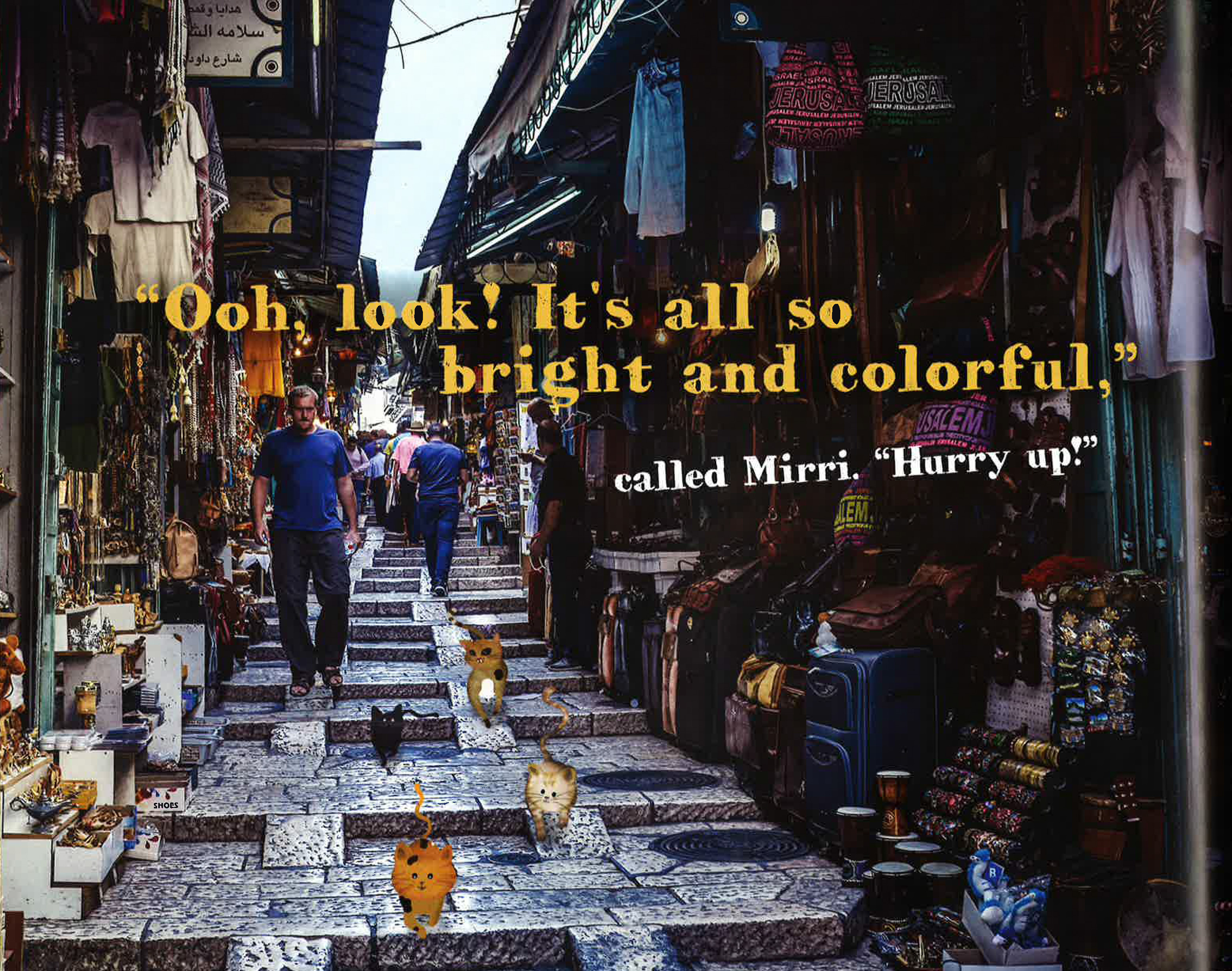 Olivia and her three kittens adventurous Mirri, serious Jem and shy Bex find themselves on the go in Jerusalem, after escaping the confines of their travelling basket. From the Windmill to the Wall, the Dome of the Rock to via Dolorosa, Christ's tomb to the Light Rail, and including visits to the Jewish shuk, parliament, museum and Biblical Zoo, the cats scamper around the city as if it were their personal playground, arriving safely back at their moshav after an unexpectedly exhilarating day out.